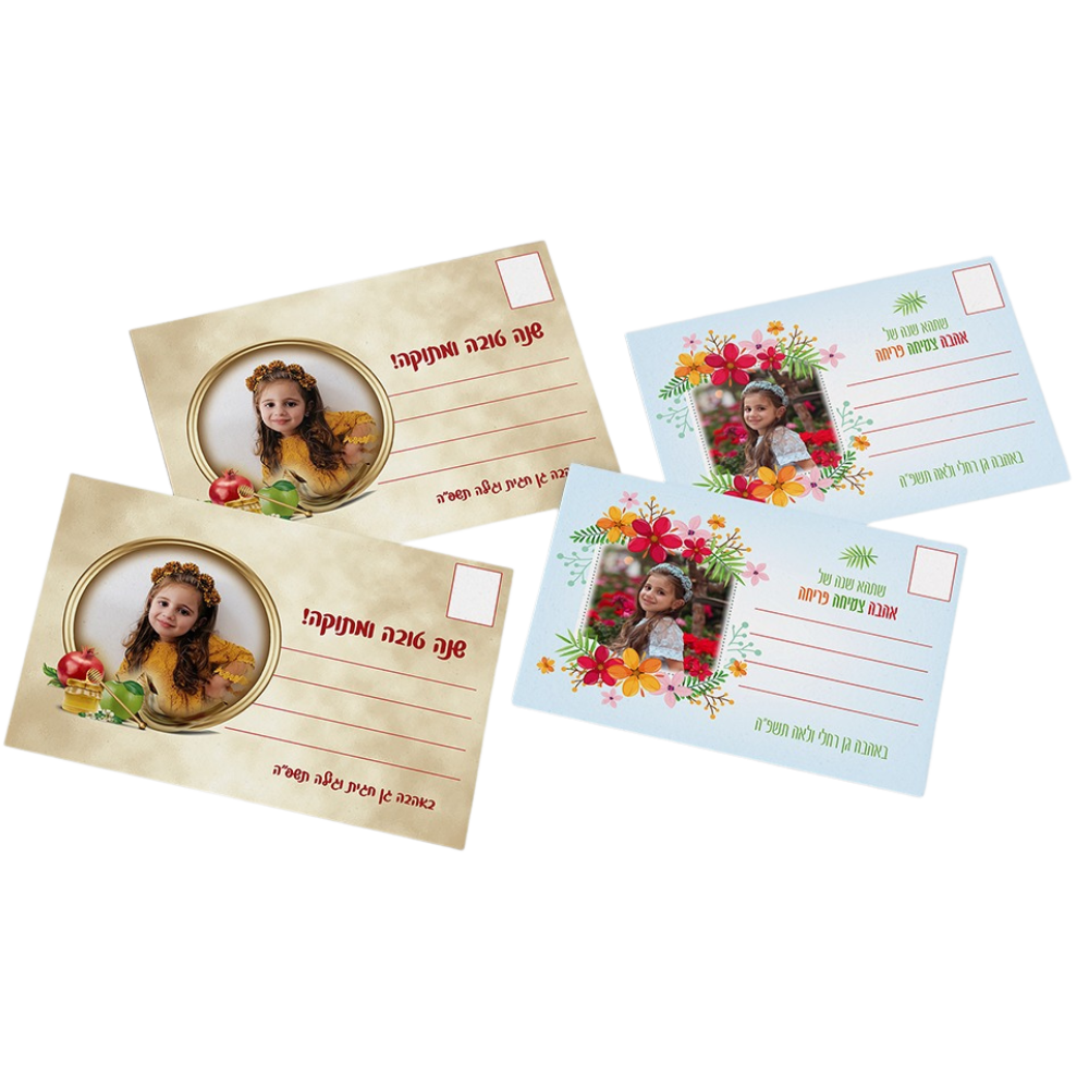 הגלויות כוללות מקום לכתיבת ברכה אישית,