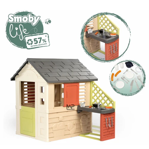 מטבח הקיץ מורכב מפלטה וכיור. הרבה אביזרים כלולים: 2 כוסות, 2 צלחות, סכו"ם, סיר תבשיל  2 נקניקיות. ווים מונחים ליד הכיור לתליית כלים