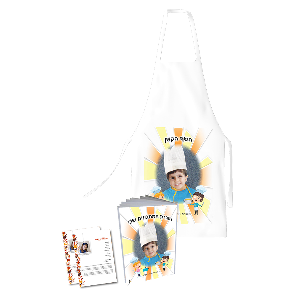 חוברת מתכונים A5 + סינר עם תמונת/שם הילד
