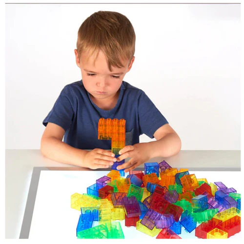 קוביות בנייה שקע תקע איכותיות מפלסטיק שקוף-צבעוני
