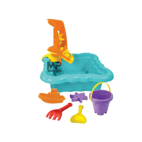 המשחק מכיל: שבשבת חול + כף, דלי + 2 תבניות חול במגש