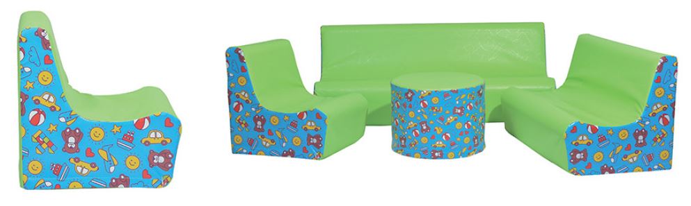 סט סלון מודפס – דגם דובי כחול (4 חלקים)