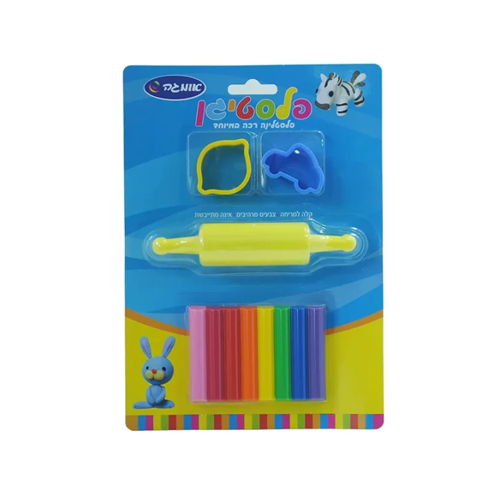 פלסטיגן 8 צבעים + מערוך + שבלונה בבליסטר