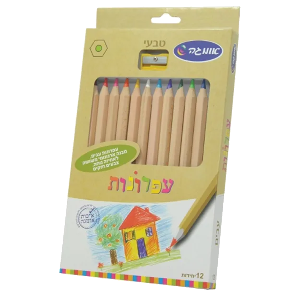 / 12 עפרונות צבעוניים משולשים עבים טבעי